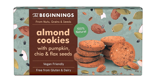 Almond cookies with pumpkin, chia, and flaxseeds