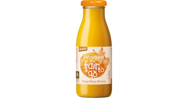 Biodynamic smoothie of oranges, mangoes, and passion fruits