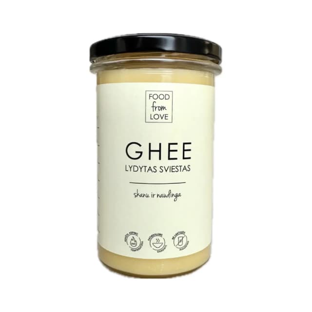 GHEE clarified butter is heated for a long time during its production until the water evaporates, carbohydrates are removed, and only milk fats remain. It is an excellent choice for baking, stewing, or frying, as this butter is suitable for cooking at high temperatures. GHEE has a slightly sweet nutty aftertaste and a pleasant aroma.