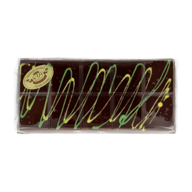Dark chocolate with crispy pistachio filling and Kadayif dough. Made in Lithuania.
