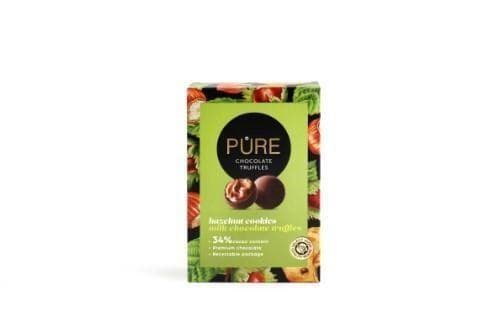 Dark chocolate truffles PURE with hazelnut and crunchy biscuit cream f