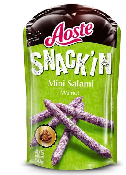 The Dried pork sausages AOSTE SNACK'IN Walnut Sticks appear to be generally safe for consumption by the general population when consumed within normal dietary limits. However, certain individuals may experience adverse effects such as allergic reactions to nuts or lactose intolerance. The presence of sodium nitrite (E250) raises concerns about potential health risks associated with high consumption of nitrites, linked to certain types of cancer and methemoglobinemia. The use of cellulose (E460) is considered safe, generally having no significant adverse effects.
