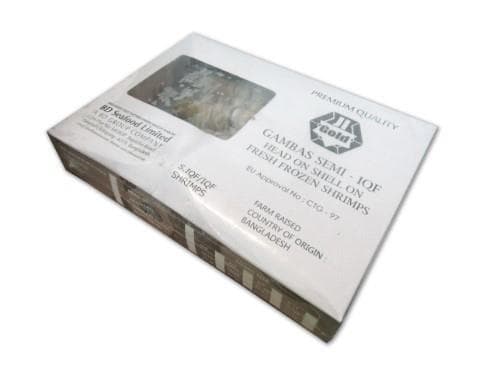 Frozen large black tiger prawns, with heads, oats, 6/8, 20% glaze, 1kg