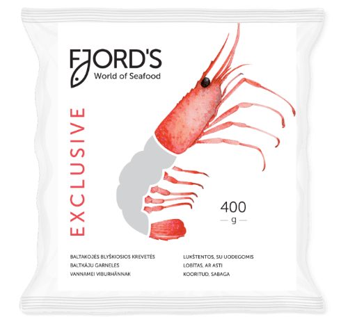 Frozen white leg shrimps FJORD'S, peeled, deveined, tail on, raw, 16/20,400g