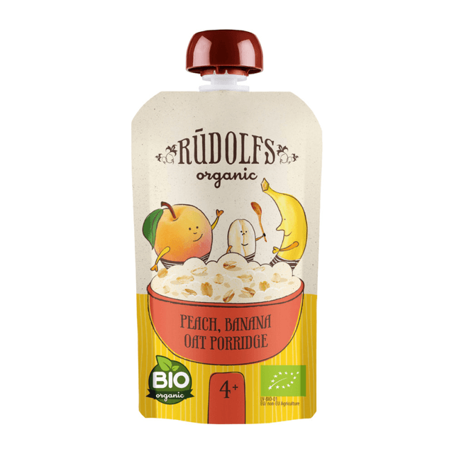 Gluten-free oatmeal porridge with peaches and bananas, from 4 months, organic