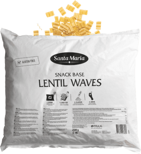 A delicious lentil snack, ready to fry! Made with 45% lentil flour, it's perfect for a crispy treat. Available in a 2.5 kg pack.