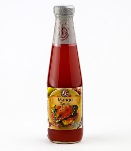 Ingredients: sugar, mango 18%, water, hot pepper, salt, tapioca starch, acidity regulators: E260, E330; garlic, stabilizer E415, preservative E202. May contain traces of gluten-containing cereals, fish, nuts, soybeans, and sesame seeds.
