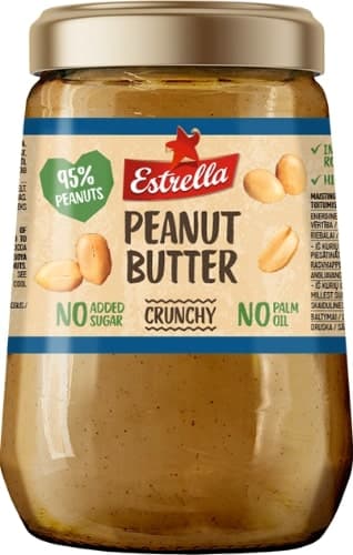 The peanut butter ESTRELLA appears to be safe for consumption as it primarily consists of peanuts, which are a nutritious source of protein, healthy fats, and vitamins. However, individuals with peanut allergies should avoid this product due to the risk of severe allergic reactions. Other ingredients like cocoa butter and vegetable oils are generally recognized as safe, though consuming excessive amounts of processed oils could lead to negative health effects over time. Sea salt should be consumed in moderation.