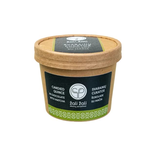 Quince confit with matcha and white chocolate