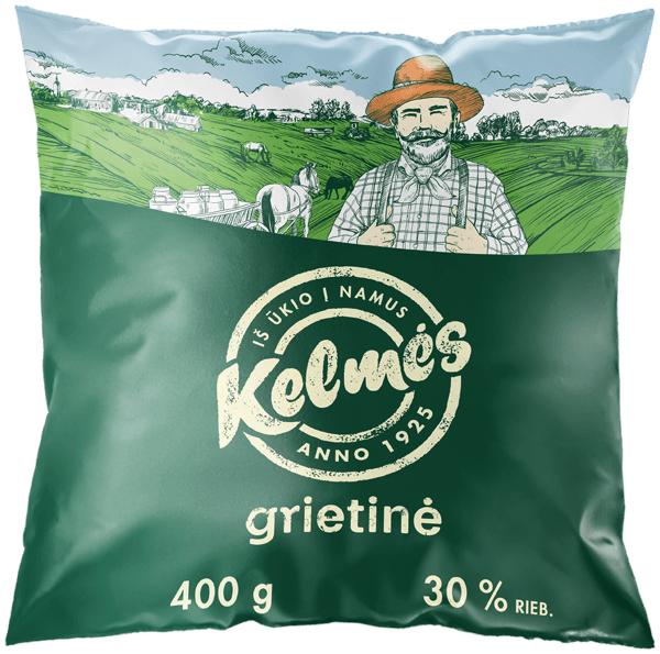 Sour cream KELMES, in plastic bag, 30%, 400 g