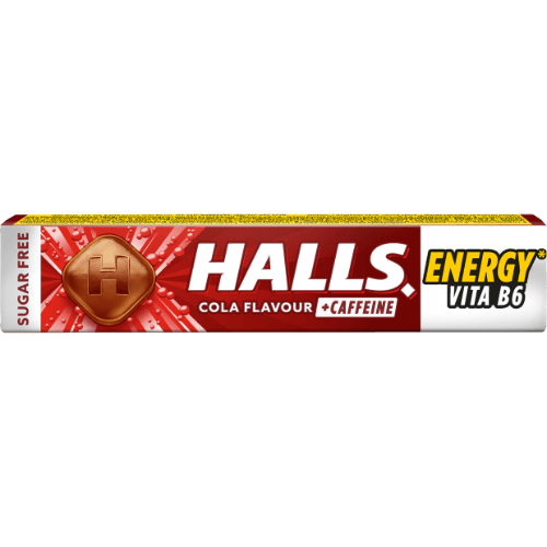 Sugar-free cola-flav. candies HALLS, w vitamin B6&caffeine 0,1%,32 g