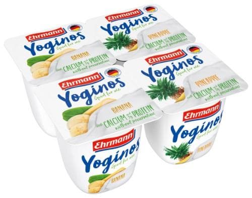 Yogurt YOGINOS with bananas and pineapples, 0,1% 4x100 g