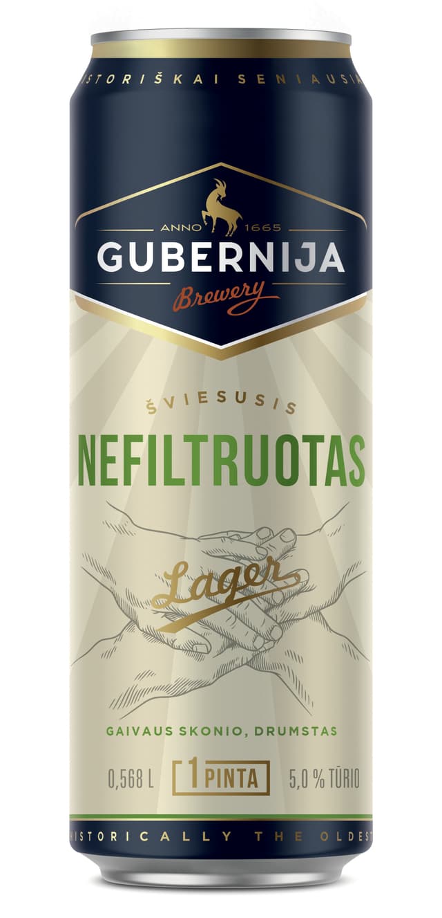 Alus GUBERNIJA, Nefiltruotas Lager,5%,0,568l, skardinė