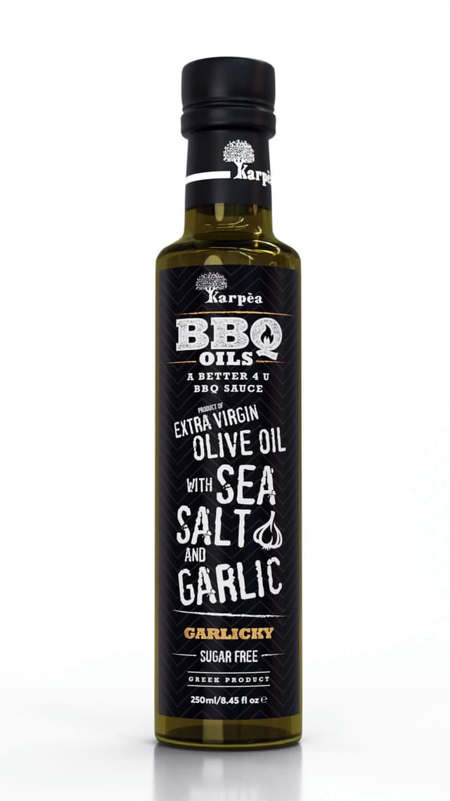 Alyvuogių aliejus KARPEA, BBQ, extra virgin, su rūkyta jūros druska, česnaku 250 ml