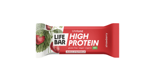 Baltyminis batonėlis su braškėmis, ekologiškas