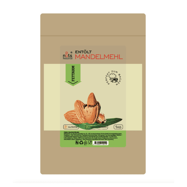 Blanširuotų migdolų miltai, nuriebinti, be glitimo