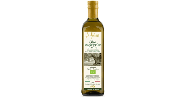 Ekologiškas extra virgin alyvuogių aliejus „La Molazza“ iš Pietų Italijos. Tai aukščiausios rūšies alyvuogių aliejus, išspaustas šaltuoju būdu iš alyvuogių tik mechaniniu būdu. Švelnaus, malonaus skonio. Tinka gardinti paruoštą maistą, troškinti, trumpai kepti. Tinka ir odos priežiūrai. Rūgštingumas 0,3-0,5 %. Polifenoliai < 200 mg/kg. Auginamas ir spaudžiamas Kalabrijos regione, netoli Corigliano Calabro ir Sibari miestelių privačiame, šeimos valdomame alyvuogyne. Vietovės pavadinimas išvertus reiškia „alyvmedžių žemė“. Spaudžiama ne vėliau nei per 12 val. surinkus alyvuoges. Ūkyje kontroliuojama ekologinė žemdirbystė ir kilmės vieta (kadangi itališki aliejai gana dažnai klastojami). Extra virgin kategorijos alyvuogių aliejaus gamyboje spaudimo metu kontroliuojama temperatūra, ji nepakyla aukščiau 27ºC, tad aliejus tinka ir žaliavalgiams (raw). Kadangi sudėtyje dominuoja mono-nesočiosios riebalų rūgštys, alyvuogių aliejus tinka troškinti ir trumpai kepti neaukštoje temperatūroje. Tai nepriekaištingas pasirinkimas skonio atžvilgiu. Tačiau norint išsaugoti visas vertingąsias šio aliejaus maistines savybes, geriausia jį naudoti nekaitintą: pilti ant salotų, į sriubas, košes, kitą jau pagamintą maistą. Tamsaus stiklo butelyje. Sudedamosios dalys: ekologiškas extra virgin alyvuogių aliejus.