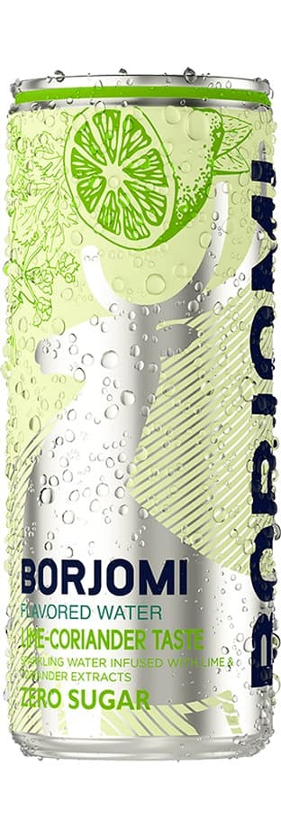 Gazuotas stalo vanduo BORJOMI, žaliosios citrinos - kalendros skonio, 0,33 l, skardinė