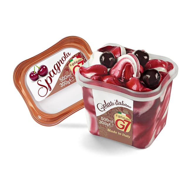 Itališki ledai be glitimo G7 Spagnola, su juodųjų vyšnių sirupu ir vyšnių cukatomis, 500 ml
