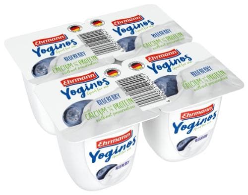 Jogurtas YOGINOS, su mėlynėmis, 0,1%, pakuotę sudaro 4 vnt. x 100 g
