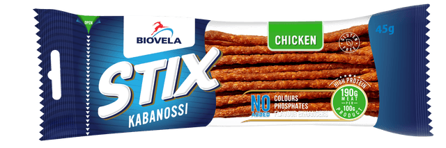 Karštai rūkytos, STIX kabanossi lazdelės, vištienos, a.r., 45 g