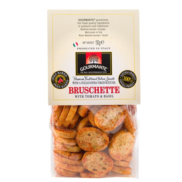 Krekeriai Bruschette GOURMANTE, su pomidorais ir baziliku, 150 g