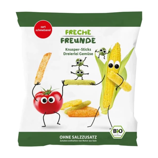 Kukurūzų trapučiai su žirneliais ir pomidorais, nuo 12 mėn., ekologiškos