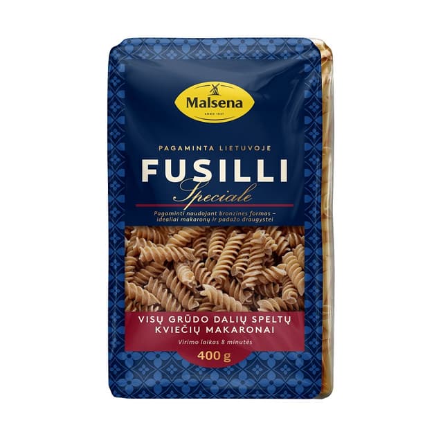 Makaronai MALSENA, Fusilli, viso grūdo speltų kviečių, 400 g