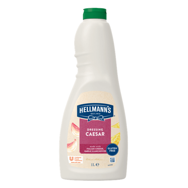 Išbandykite HELLMANN'S cezario salotų padažą – puikiai subalansuota skonių kombinacija su kietuoju sūriu ir ančiuviais. Idealiai tinka jūsų mėgstamoms salotoms. 1 l.