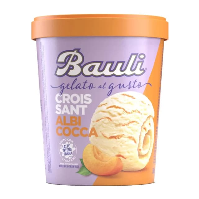 Pieniški kruasanų skonio valgomieji ledai su persikų sirupu