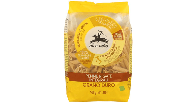 Pilno grūdo kviečių makaronai PENNE RIGATE, ekologiški