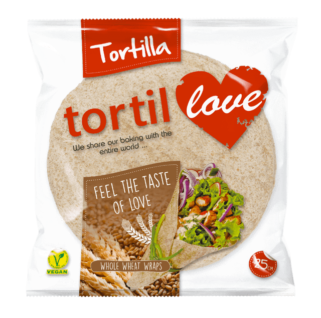 Pilno grūdo tortilijos TORTILLOVE, kviečių ir rugių, 25 cm x 6 vnt, 360 g