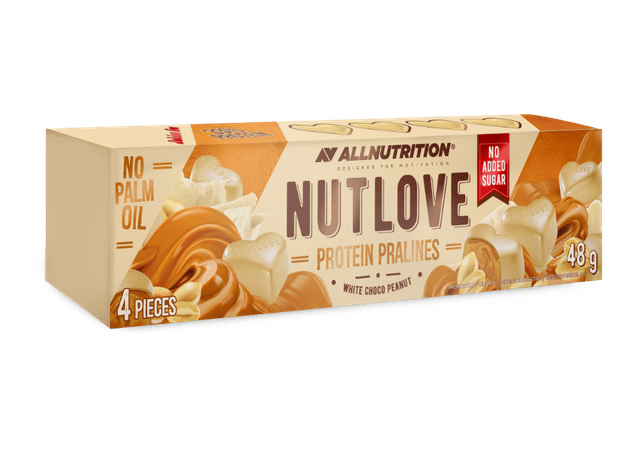 Proteininiai baltojo šokolado saldainiai NUTLOVE ALLNUTRITION su riešutų įdaru, 48g