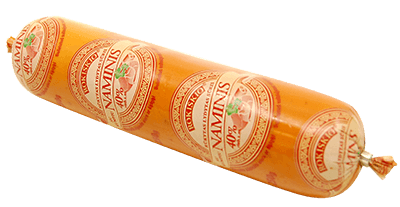 Rūkytas lydytas ROKIŠKIO NAMINIS sūris su kumpiu, 40 % RSM, 250 g