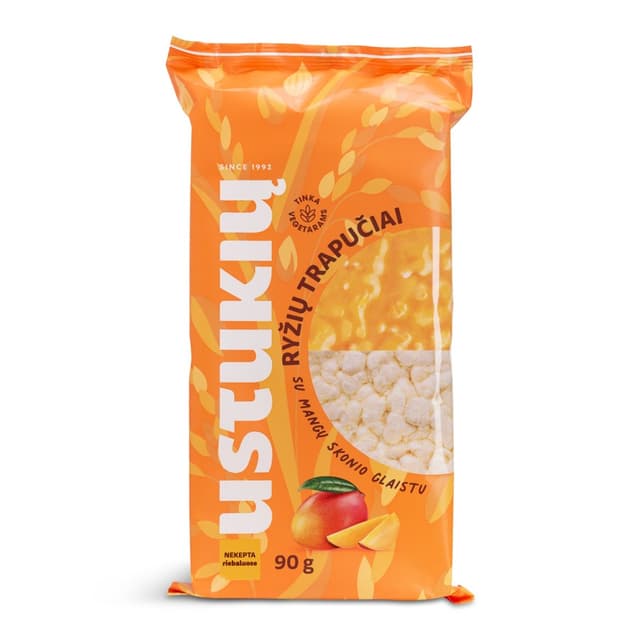 Ryžių trapučiai USTUKIŲ MALŪNAS, su mangų skonio glaistu, 90 g