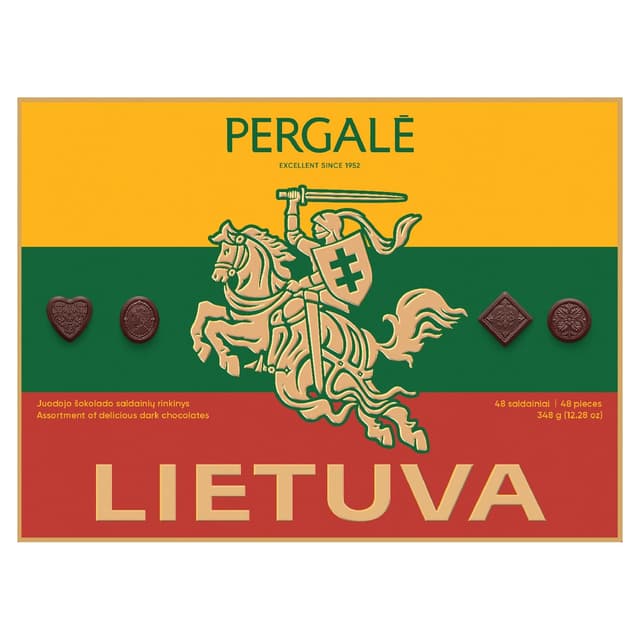 Saldainių rinkinys PERGALĖ Lietuva, su juoduoju šokoladu, 348 g