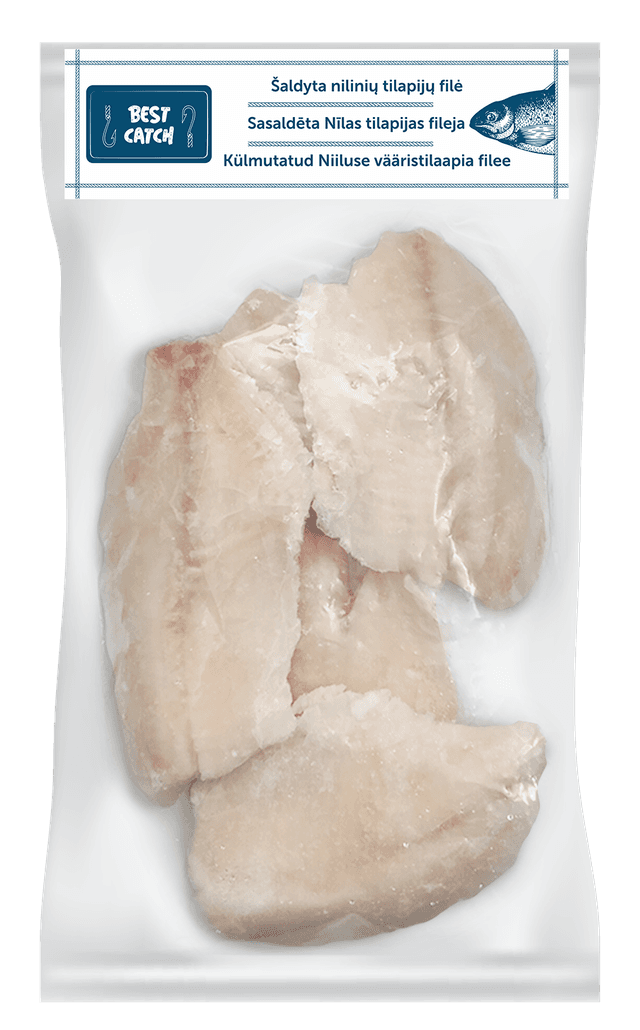 Šaldyta nilinų tilapijų filė BEST CATCH, be odos, dydis 90-150 g, 30 %, 750 g/525 g