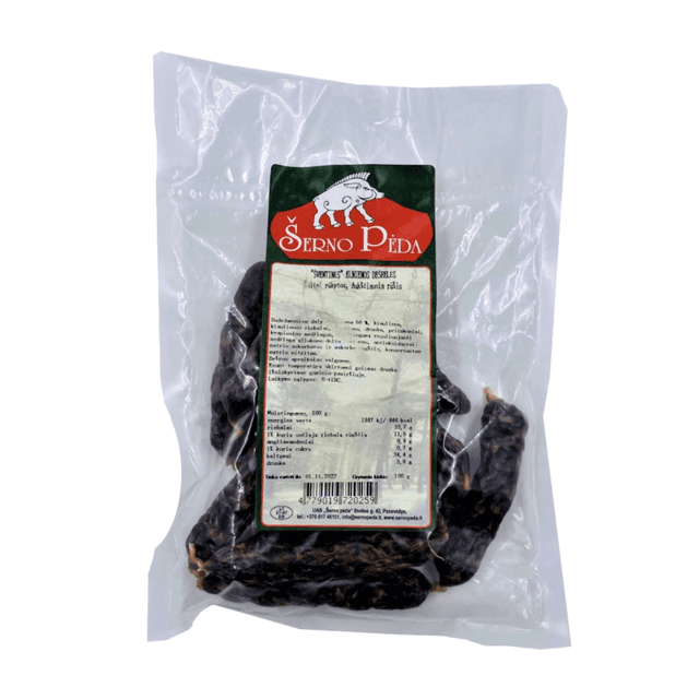 Šaltai rūkytos elnienos dešrelės ŠVENTINĖS, aukščiausia rūšis