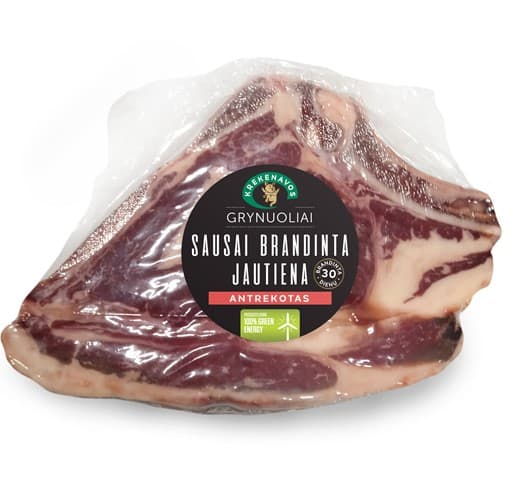 Sausai brandinta jautienos antrekotinė nugarinė su kaulu "GRYNUOLIAI", ~0.45kg
