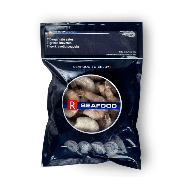 Tigrinės krevetės, be galvų, nevirtos, nelukštentos, šaldytos