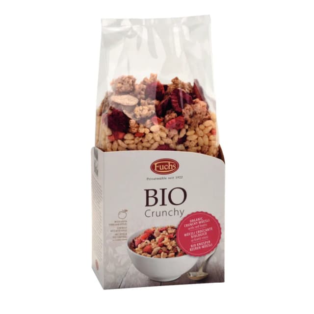 Traškūs dribsniai su raudonaisiais vaisiais BIO CRUNCHY, ekologiški