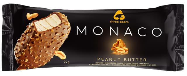Valgomieji ledai MONACO žemės riešutų skonio, su įdaru, pieninio šokolado glaistu ir pabarstais, 75g