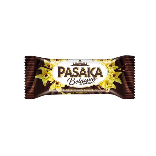 Varškės sūrelis PASAKA, glaistytas belgišku šokoladu, su vanile, 23%, 45 g