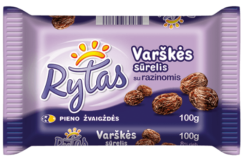 Varškės sūrelis RYTAS, su razinomis, 8%,100 g