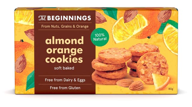 Veganiški migdoliniai sausainiai THE BEGINNINGS, su apelsinais, 80 g