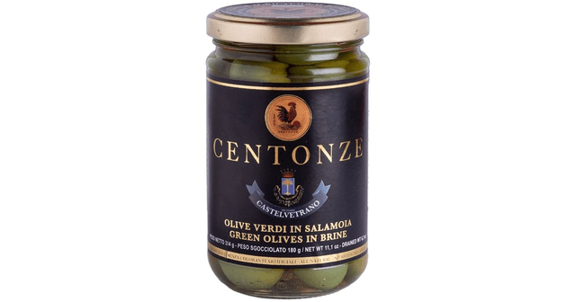 „Centonze“ žaliosios alyvuogės su kauliukais sūryme. Nocellara del Belice žaliosios alyvuogės sūryme pasaulyje žinomos dėl Castelvetrano metodo – jos yra auginamos ir gaminamos išskirtinai Vakarų Sicilijos Belicės slėnyje. Alyvuogės yra saldaus skonio ir traškios tekstūros. Idealus itališkas užkandis ar patiekalas. Be dirbtinių dažiklių. Stikliniame indelyje su metaliniu užsukamu dangteliu. Atidarius laikyti šaldytuve. Grynasis svoris 180 g. Italijoje (Sicilija) pagamintas produktas. Sudedamosios dalys: Nocellara alyvuogės, vanduo, druska, rūgštingumą reguliuojančios medžiagos: pieno rūgštis (E270), askorbo rūgštis (E300).